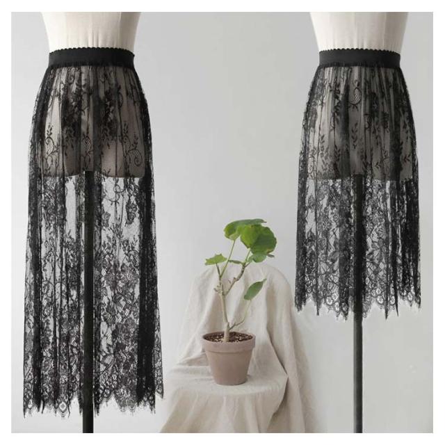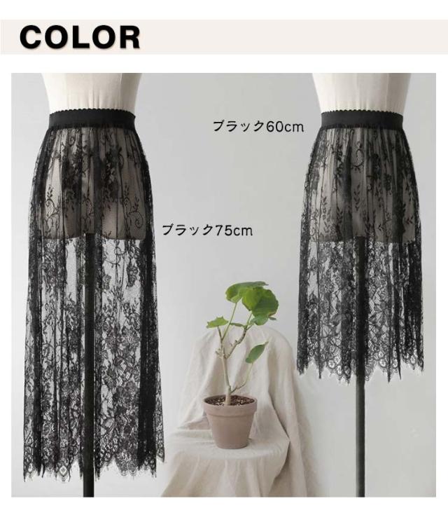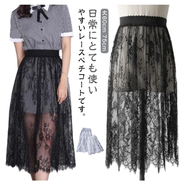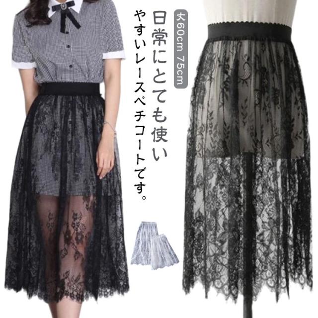 ペチコート スカート レーススカート レース インナー インナースカート ミディアム丈 ロング丈 丈60cm 75cm 重ね着 体型カバー ぺチスカート ドレス ワンピース インナー レイヤード 裾レース 和装 着物 浴衣 肌着 下着 透け対策 シンプル 春 夏 秋 送料無料
