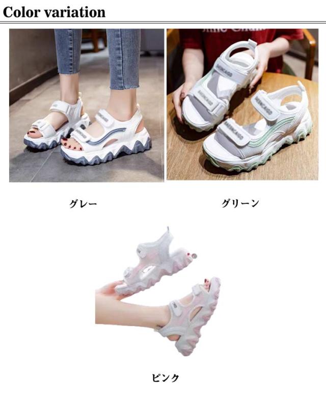 サンダル 厚底 スポーツサンダル レディース 厚底サンダル メッシュ プラットフォーム ダブルベルト 5センチヒール 通気性 軽量 カジュアル 歩きやすい 疲れない コンフォート 走れる 春 夏 スニーカーサンダル ベルトサンダル メッシュサンダル ビーチサンダル 【送無】