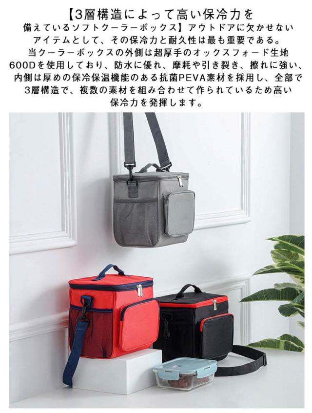 | 小型10Lソフトクーラーボックス。防水、軽量、断熱 【3層構造によって高い保冷力を備えているソフトクーラーボックス】アウトドアに欠かせないアイテムとして、その保冷力と耐久性は最も重要である。当クーラーボックスの外側は超厚手のオックスフォード生地600Dを使用しており、防水に優れ、摩耗や引き裂き、擦れに強い、内側は厚めの保冷保温機能のある抗菌PEVA素材を採用し、全部で3層構造で、複数の素材を組み合わせて作られているため高い保冷力を発揮します。 【使い勝手が抜群な大容量保冷バッグ】容量は約10L、350mlの缶なら12本収納できる大容量の保冷バッグ。しかも角型で蓋も大きく開くので、総菜やお弁当も傾けずにまっすぐ入れやすい。メインの収納場所とは別にフロントに大きめのファスナーポケットを設置しているため、食材以外にもカトラリーや食器などの小物類を収納しやすい、また両サイドの網ポケットには携帯、、財布なども収納でき、出掛ける時必要なものが1つのバッグに収まります。そして食べ物や飲みものをこぼしてもきれいに拭き取れる生地を採用しており、お手入れも簡単です。 ソフトクーラーの内側は継ぎ目のないホットプレス技術を採用したことで、より優れた漏れ防止効果を実現し、氷が水に溶けた後バッグから水が染み出す心配がなくなり、釣りなどの場合も問題なく使えます。 【2WAY仕様・コンパクトに収納可能なクーラーバッグ】荷物の量に合わせて手持ち・肩がけタイプから持ち方を選べる2way仕様。付属したショルダーストラップは取り外しや調整が可能になっていて、さらにショルダーパッドも付いたことにより、ショルダーストラップの食い込みを軽減、肩からのずれ落ちを防げます。 また、固い素材で作られたハードクーラーボックスとは違い、使わないときにはコンパクトに折りたためるので、収納場所に困らなくちょっとした隙間に入れて保管が出来ます。ハードタイプのクーラーボックスより軽くてかさばらないので持ち運びやすいです。 【様々なシーンで活躍】保冷・保温のどちらにも使えるソフトクーラーボックス。キャンプや釣り、BBQといったアウトドアレジャーはもちろん、スポーツ、お花見、運動会、花火大会、日頃の買い物といったシーンでも大活躍します。 | |