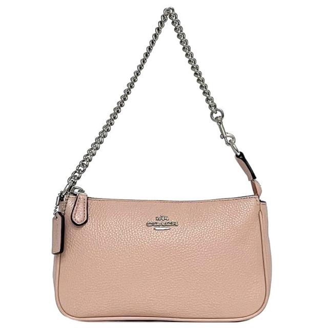 コーチ アクセサリーポーチ f-23090 ピンク 53077 美品 ポーチ レザー 中古 COACH チェーン 小物入れ ミニバッグ ハンドバッグ ファスナー ワンポイント ロゴ 定番 人気 小さい ミニ コンパクト レディース お洒落 シンプル 高級感 上品 ブランド 本物 鑑定済み