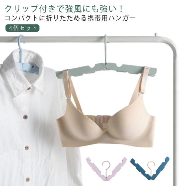 携帯 4個セット ハンガー 薄い 旅行 便利 小さい 持ち運び 折りたたみハンガー 折り畳み コンパクト ミニ 小型 防風 軽量 超 クリップ付き 洗濯物 4個セット 物干しハンガー 携帯ハンガー 外出先 出張 車用 キャンプ アウトドア