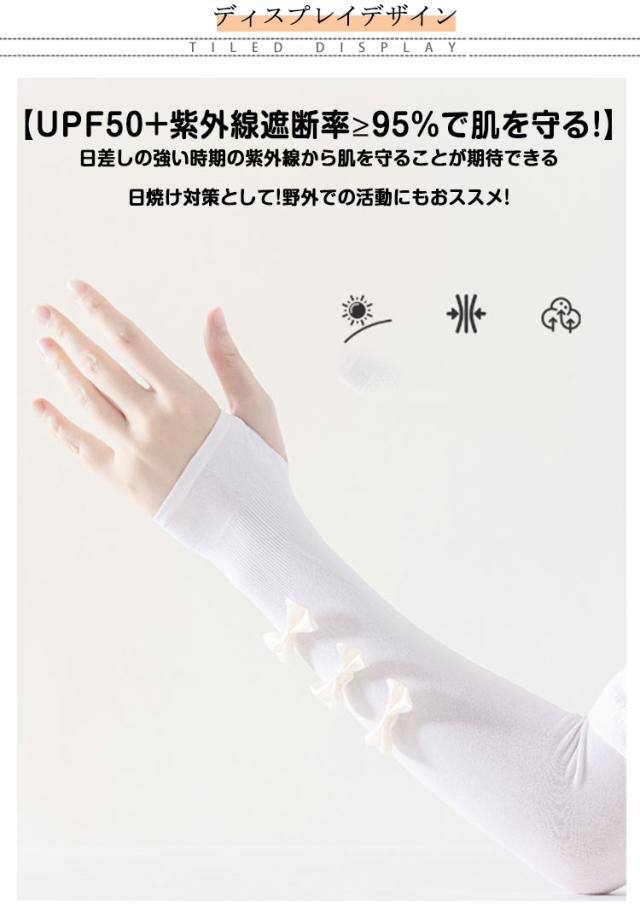 | 紫外線遮断率?95% UPF50+ 接触冷感 吸汗速乾 手の甲までしっかりカバー! リボンとレースデザインがかわいい♪ キッズ用アームカバー 【ひんやり冷却!】接触冷感の材質を採用して、汗をかいたり水に触れたりした時、氷水と洋の満れが熱の作用を気化させ、気化吸熱原理に基づいて。冷却効果があります。 【UPF50+紫外線遮断率?95%で肌を守る!】日差しの強い時期の紫外線から肌を守ることが期待できる日焼け対策として!野外での活動にもおススメ! 【伸縮性・通気性・速乾性抜群】フリーサイズですが、伸縮性が抜群で、肌にぴったり、肘関節の曲げ伸ばしが楽になります。さらに通気性も抜群で速乾性も抜群なので夏場も快適にお過ごしいただけます。 【指掛けタイプ】指穴が付いているため、手元が自由に使え、活動時にも使いやすいです。 【ズレ落ち防止】引き締めるデザイン、手や肘の曲げ伸ばしによるずリ上がりやずり落ちりの心配がなし!活発なお子様でも安心! 【色んな場面で使いやすい!】薄いのに引っ掛けても破れにくいアイスシルク素材、汗や湿気を素早く吸収・乾燥のドライ設計でスポーツ時はもちろん、プールや海水浴などのアウトドアにもぴったり! 【かわいいリボンとレースデザイン】女の子もご利用いただけるよう、選べる4タイプを取り揃えました。アウトドアやスポーツ観戦、外遊びやお散歩など、日焼けが気になるシーンの様々なお悩みをキュートに解決♪ | |