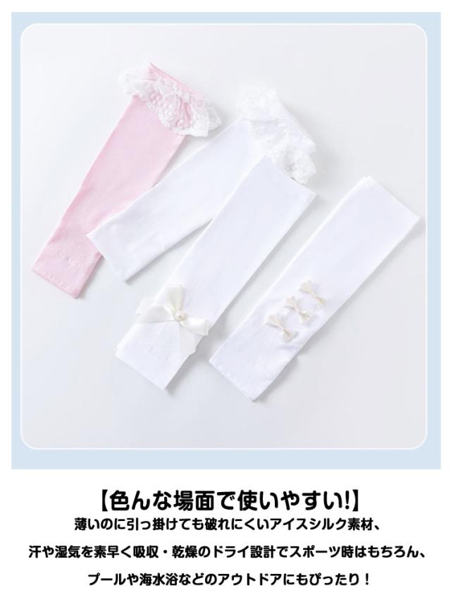 吸汗 レース 可愛い ベビー キッズ 日焼け防止 子供 UVカット アームカバー uv アームカバー UPF50+ 速乾 UVカット率?95% 女の子 接触冷感 手袋 冷感 指穴 袖カバー おしゃれ ロング丈 リボン あり UV手袋 スポーツ アウトドア 海水浴 夏 夏用 冷え対策 日よけ 防蚊