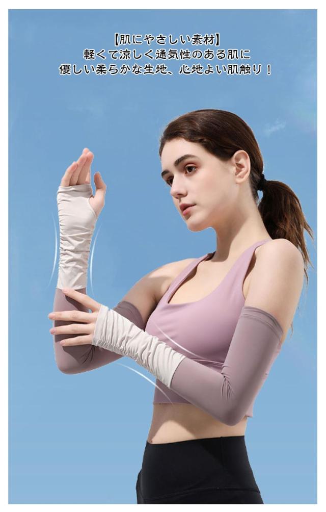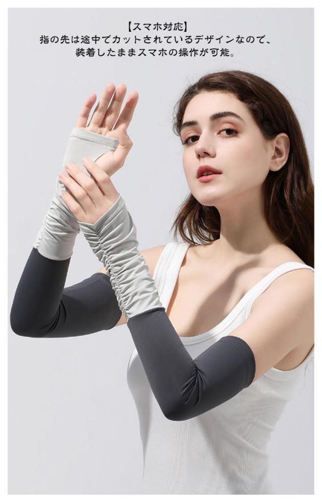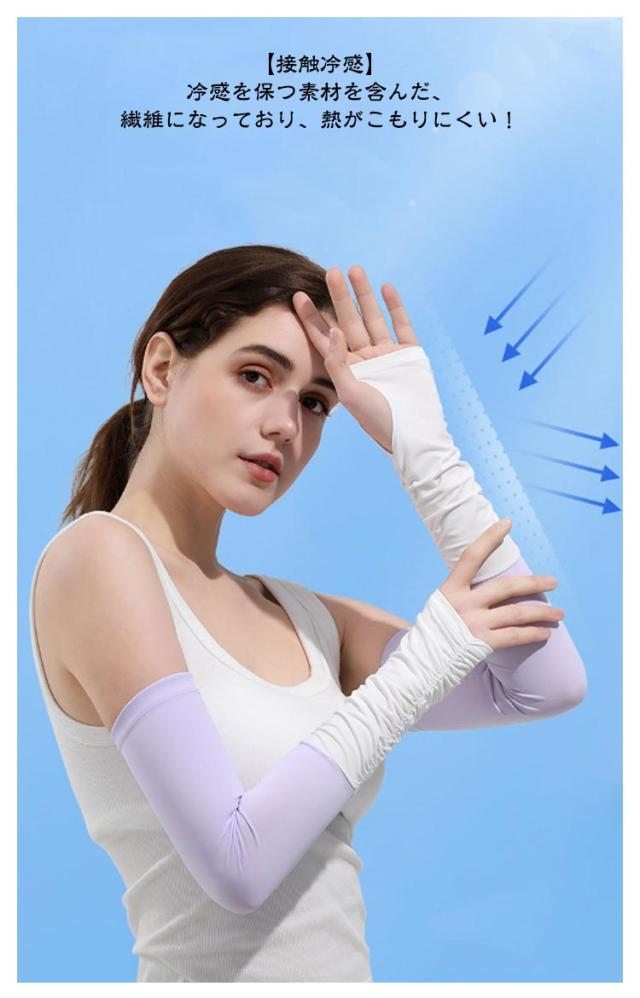 | 男女兼用 接触冷感 UPF50+ アームカバー 2セット 【UPF50+紫外線カット】光に直射を受けるとアームカバーより98%カット! 【伸縮性が良い】よーく伸びて心地よくフィット!ストレスのない着け心地が夏に快適! 【接触冷感】冷感を保つ素材を含んだ、繊維になっており、熱がこもりにくい! 【優れた通気性】熱の解散が早いので、ひんやり感が早く回復! 【肌にやさしい素材】軽くて涼しく通気性のある肌に優しい柔らかな生地、心地よい肌触り! 【スマホ対応】指の先は途中でカットされているデザインなので、装着したままスマホの操作が可能。 | |