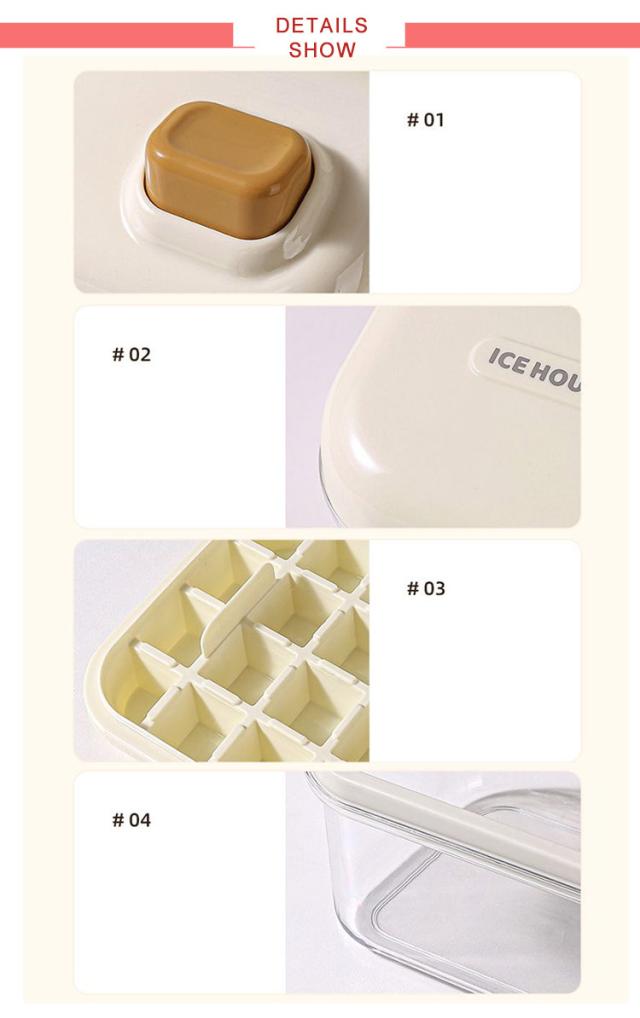 | 暑い夏に氷を作る時に欠かせないアイテム 密閉フタ付きで衛生的。匂い移りやほこりを防ぎます。 革新的なボタンデザイン、1秒で氷を離します。 一回で大量に作れます・重ね置き可能です。 簡単な操作、簡単な脱型、簡単なクリーニング。 自動製氷機より透明性の高い、美味しそうな氷ができます。 収納に便利・耐低温、長時間保存しても変形せず、触媒しません。 長く使えます・安心安全な食品級素材です。 アイストレイは、アイスキューブを作るだけでなく、フルーツジュース、コーヒー、紅茶など他の液体を凍らせて、ドリンクに風味豊かで爽やかなアクセントを加えるためにも使用できます | |