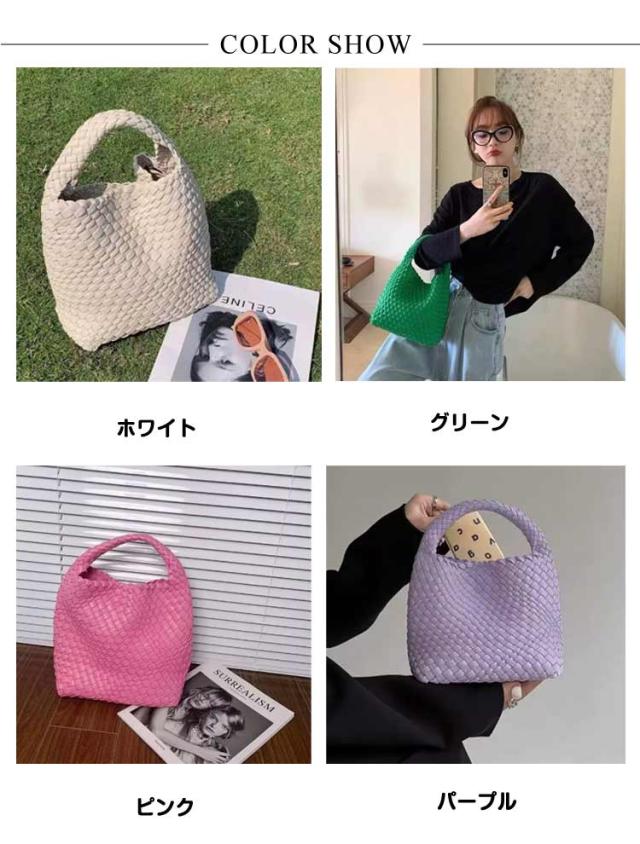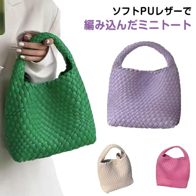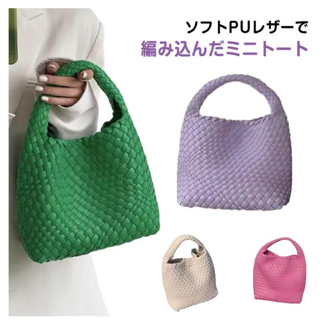 編み込み ミニトート 編み込み レディース 鞄 かばん バッグ 手提げバッグ 小さめ ハンドメイドバッグ PUレザー ins 可愛い おしゃれ ハンドバッグ 大人気 送料無料 ホワイト グリーン ピンク
