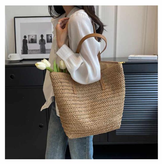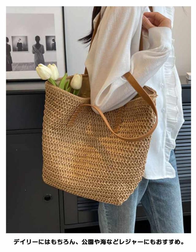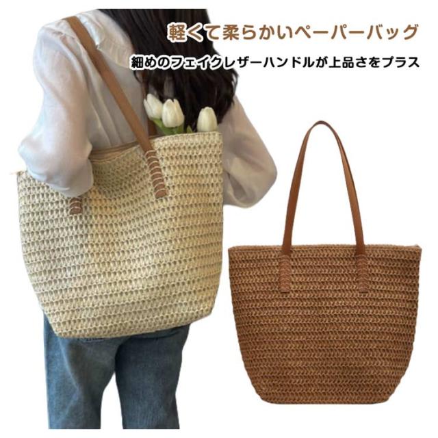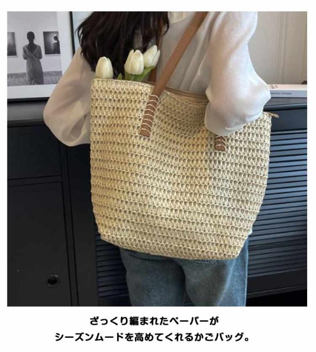 かごバッグ トートバッグ 夏バッグ サマーバッグ レディース かごバッグ かご 肩掛け カゴバッグ かごバック ペーパーバッグ A4 大容量 マチ広 軽量 ファスナー付き ストローバッグ