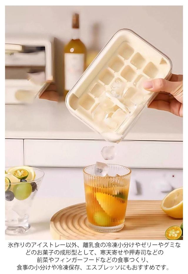 | 暑い夏に氷を作る時に欠かせないアイテム 柔らかく型から外しやすい蓋とビン付きのアイストレーは、食品グレードのシリコンとPP素材でできており、耐久性が高く、安全で再利用可能です。 家庭用のアイストレイは気密蓋で設計されており、余分な水がこぼれて凍結するのを防ぎます。さらに、気密設計により、氷が冷蔵庫の臭みを吸収するのを防ぎます。 氷作りのアイストレー以外、離乳食の冷凍小分けやゼリーやグミなどのお菓子の成形型として、寒天寄せや押寿司などの前菜やフィンガーフードなどの食事つくり、食事の小分けや冷凍保存、エスプレッソにもおすすめです。 | |