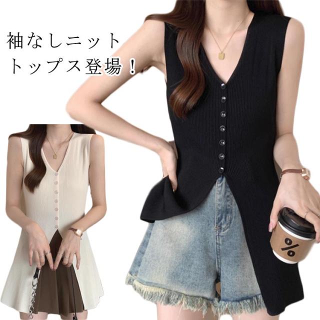 ベストニットベスト レディース カットソー スプリット サマーキャミソール トップス ニット 夏 ベストニットベスト ノースリーブ 夏服 ミドル丈 おしゃれ 大人可愛い シンプル カジュアル リゾート アウトドア ファッション