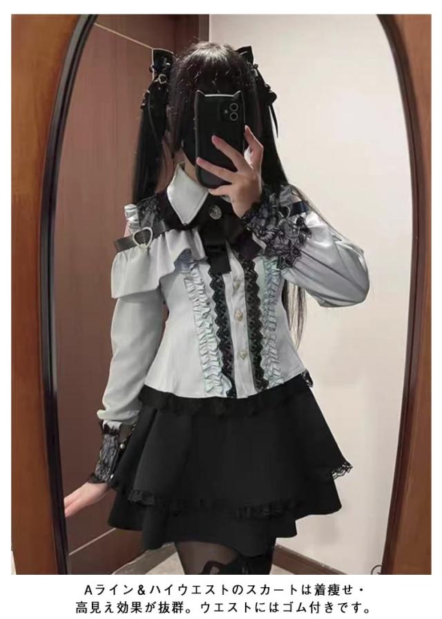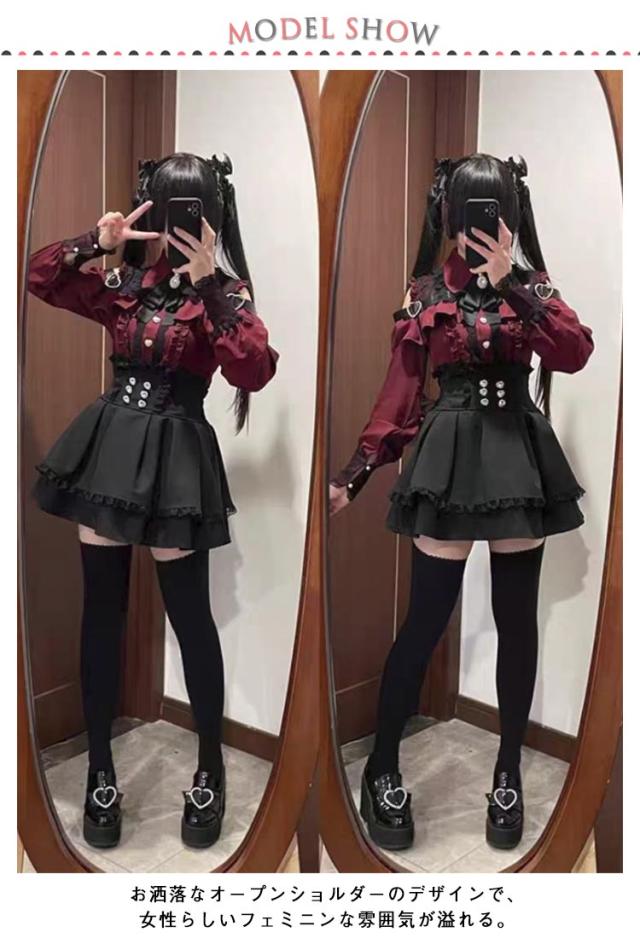 | フリルをたっぷりと施した可愛いセットアップです。 お洒落なオープンショルダーのデザインで、女性らしいフェミニンな雰囲気が溢れる。 肩にはキラキラしたハートバックル付きで可愛い。 袖口にもレース付きで、華やかさがUP。リボンブローチが取り外し可能です。 ウエストに付いている飾り用ハートボタンがポイント。 Aライン&ハイウエストのスカートは着痩せ・高見え効果が抜群。ウエストにはゴム付きです。 幅広く活躍:量産型、地雷系、ガーリー系、ロリータ系コーデにおすすめです。女子会、デートなど様々なシーンで幅広く活躍中。お洒落で可愛いデザインで、プレゼントとしてもピッタリです。 | |