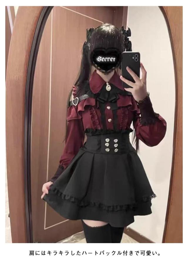 | フリルをたっぷりと施した可愛いセットアップです。 お洒落なオープンショルダーのデザインで、女性らしいフェミニンな雰囲気が溢れる。 肩にはキラキラしたハートバックル付きで可愛い。 袖口にもレース付きで、華やかさがUP。リボンブローチが取り外し可能です。 ウエストに付いている飾り用ハートボタンがポイント。 Aライン&ハイウエストのスカートは着痩せ・高見え効果が抜群。ウエストにはゴム付きです。 幅広く活躍:量産型、地雷系、ガーリー系、ロリータ系コーデにおすすめです。女子会、デートなど様々なシーンで幅広く活躍中。お洒落で可愛いデザインで、プレゼントとしてもピッタリです。 | |