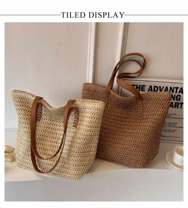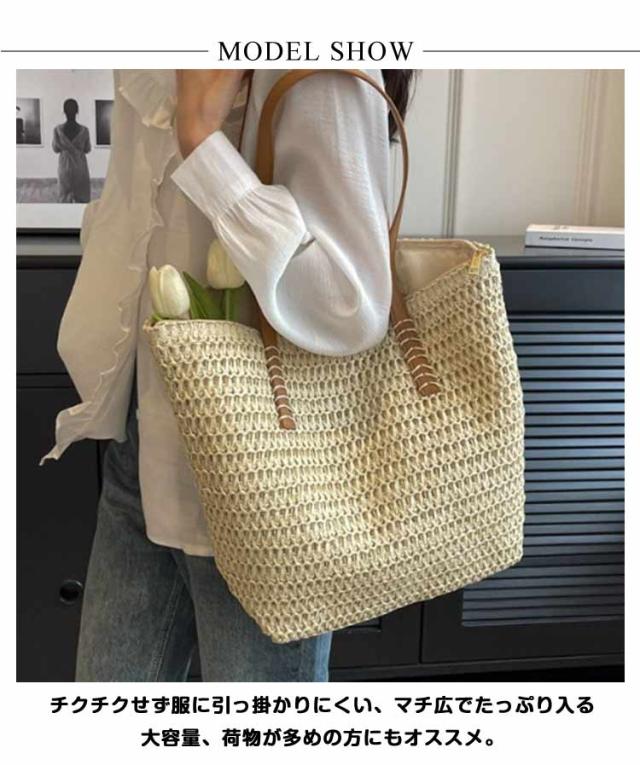 レディース トートバッグ 夏バッグ かごバッグ 肩掛け かご マチ広 サマーバッグ カゴバッグ ショルダーバッグ かごバッグ A4 大容量 ペーパーバッグ 軽量 ファスナー付き ストローバッグ
