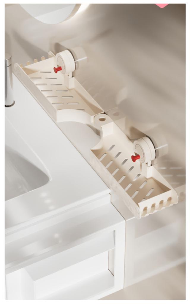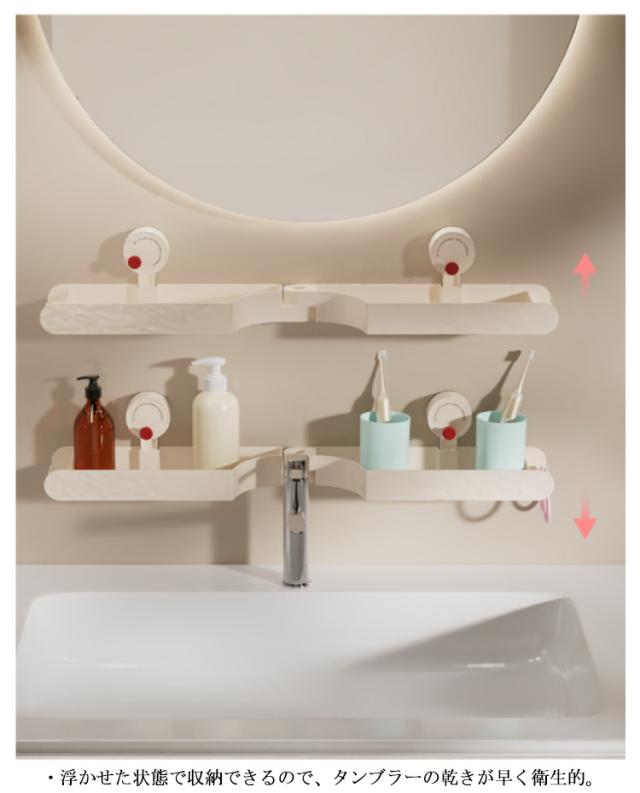 | ・洗面台の小物類を浮かせるラックに収納 ・吸盤式で簡単取り付け ・浮かせた状態で収納できるので、タンブラーの乾きが早く衛生的。 ・コーナーにも設置可能です。 | |