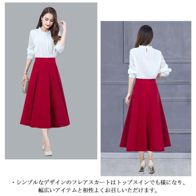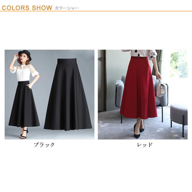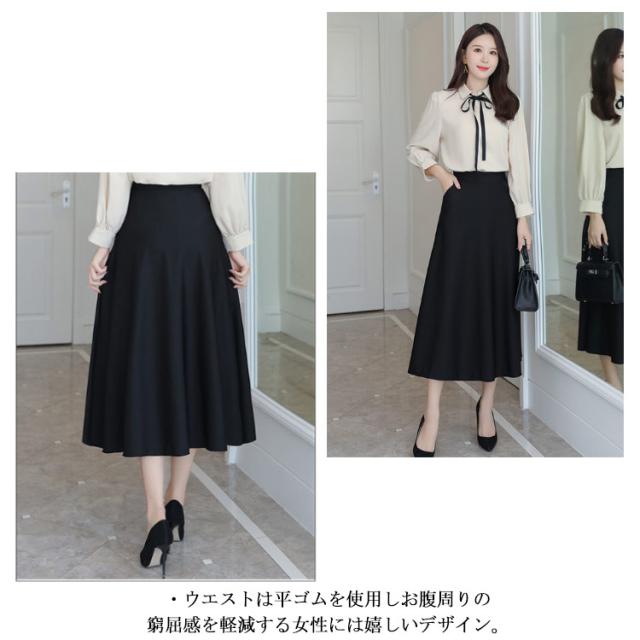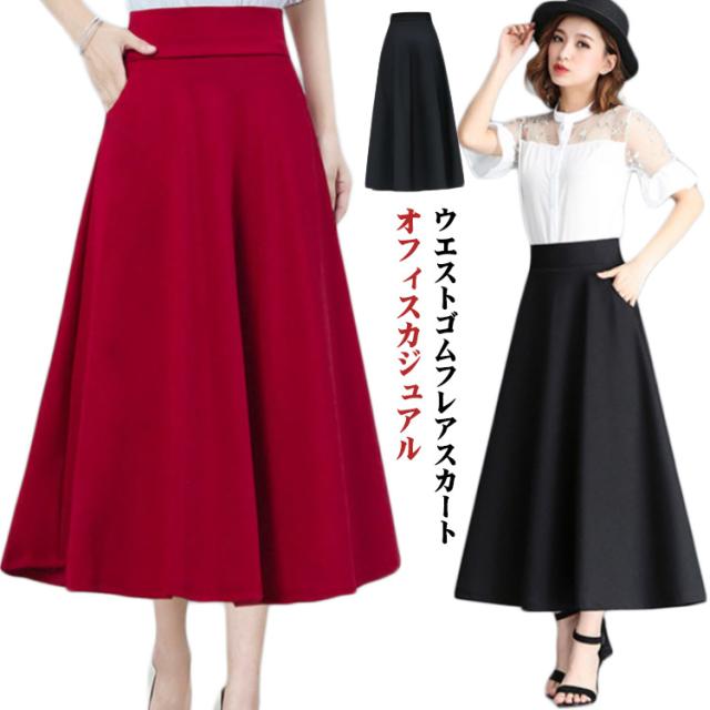 Aライン ロング丈 フレアスカート ウェストゴム フレアスカート ロングスカート ボリュームスカート ボリューム 通勤 オフィスカジュアル 春