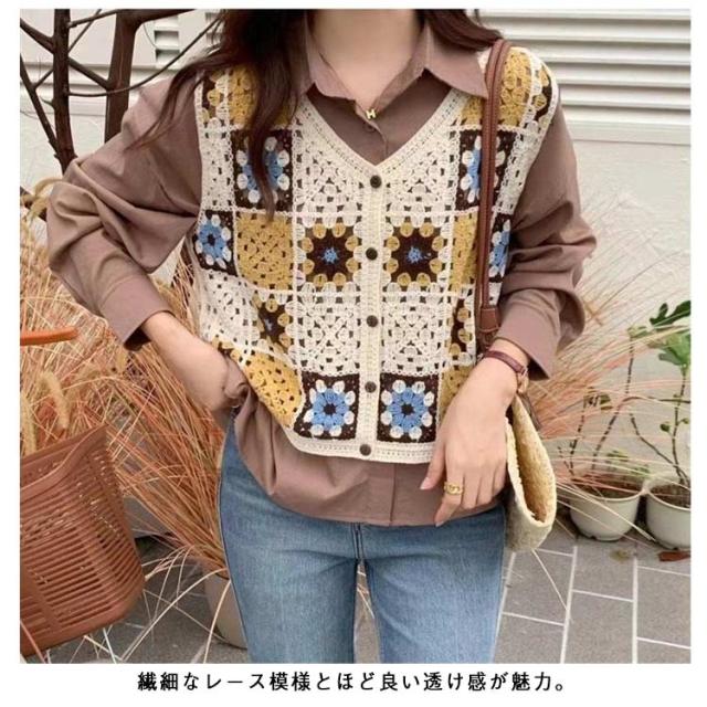 | トレンドの透かし編みでインナーとのレイヤードスタイルを楽しめるベスト。 繊細なレース模様とほど良い透け感が魅力。 透け感のある編みデザインがおしゃれ着るだけで旬のレイヤードスタイルが完成です。 半袖シャツ、ドレス、ブラウス、ジーンズ、スカートなどと組み合わせれば、毎日のリールになります。 カジュアルな日常着、毎日の仕事、ストリート、休暇、旅行、パーティー、集まり、クラブ、クラブなどに適しています。 | |