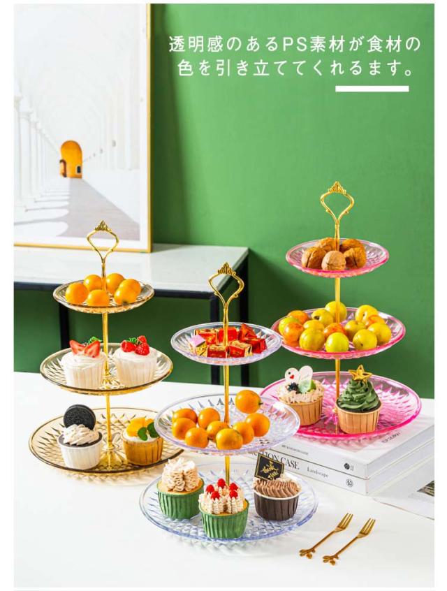 カフェ風 ティースタンド フルーツ スタンド インスタ映え 展示台 お洒落 透明 お菓子 パーティー アフタヌーンティー 収納 食器 果物 ケーキ 3段 デザートプレート 展示用 誕生日 結婚式 北欧風 お茶会 インテリア 家庭用 お祝い クリスマス