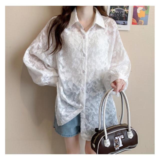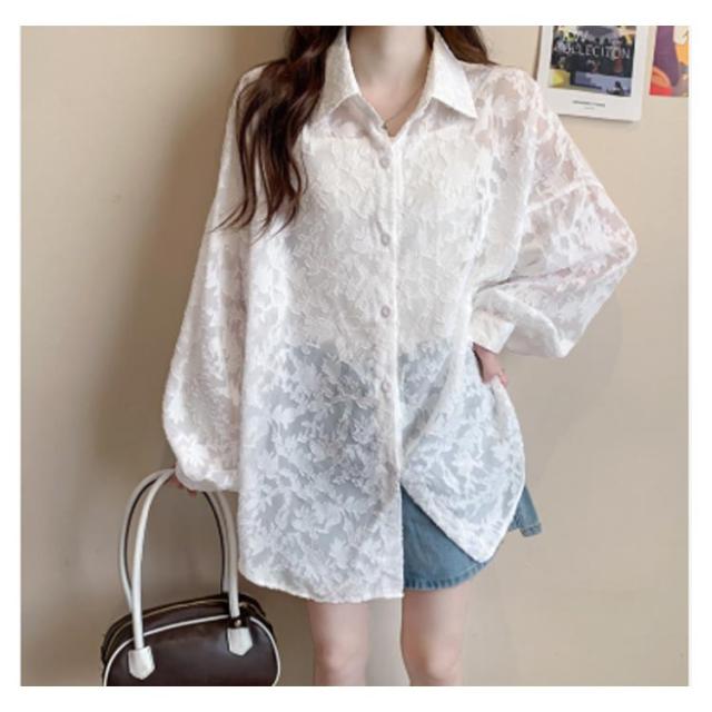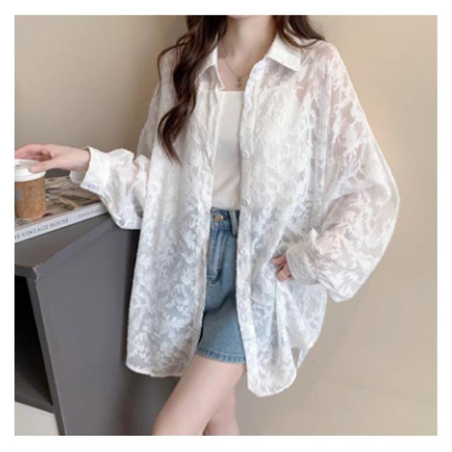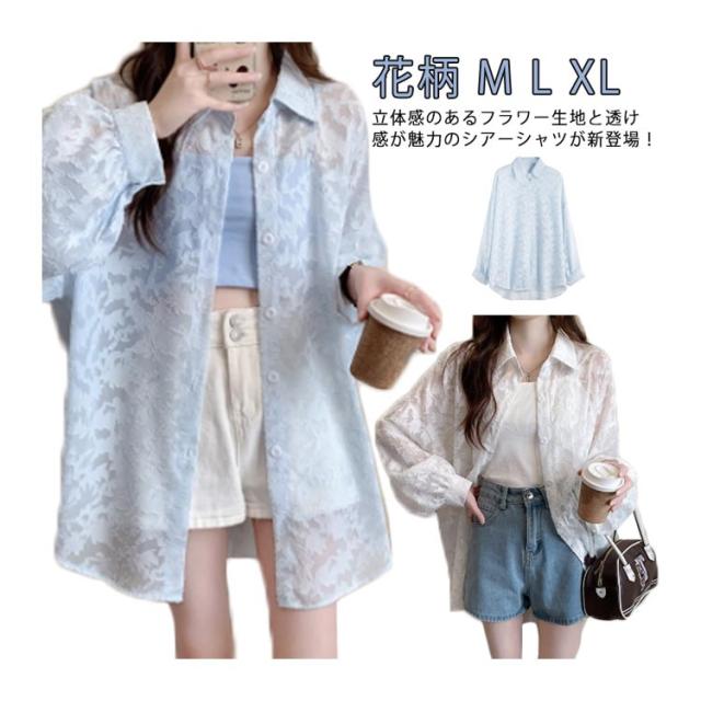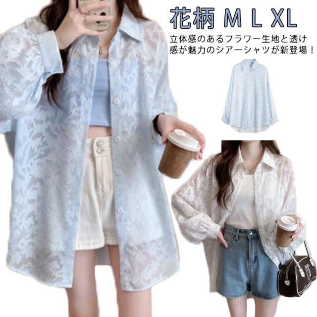 シアーシャツ シアーシャツ 花柄 シアートップス 白 オーバーサイズ ジャガード レディース 透け感 バルーンスリーブ シースルー シャツ ブラウス ゆったり オフィスカジュアル カジュアル 韓国ファッション