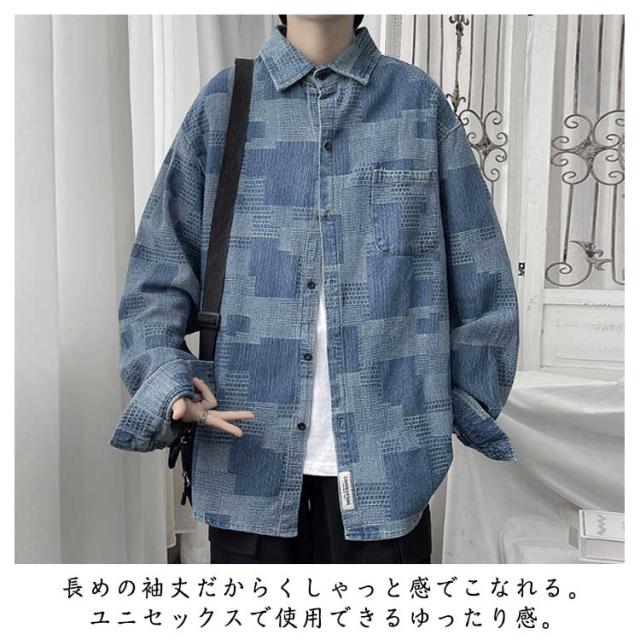 大きいサイズ デニムシャツ デニムシャツ メンズ デニムシャツ アメカジ デニムジャケット ワークシャツ シャツ 羽織り ヒューストン 長袖シャツ ミリタリー 長袖 立体感 配色ステッチ ワーク パッチワーク ナチュラル ストリート