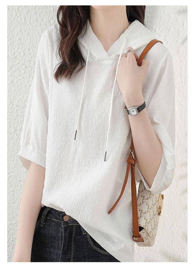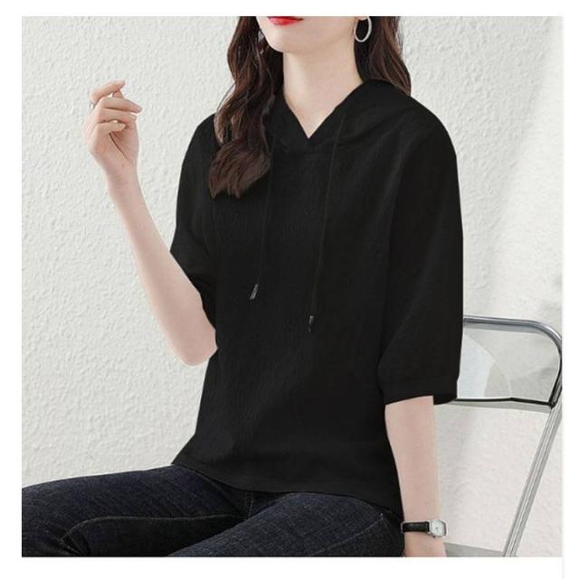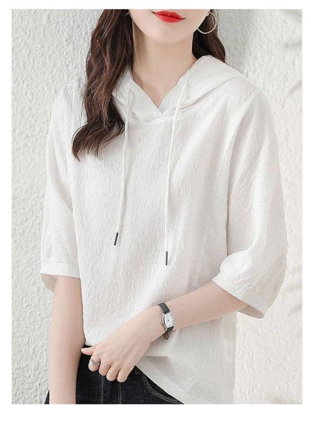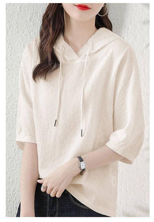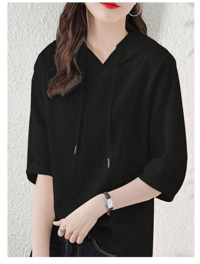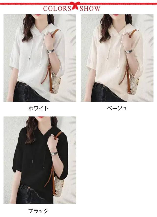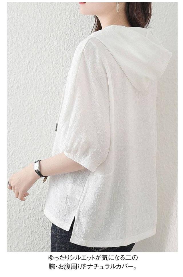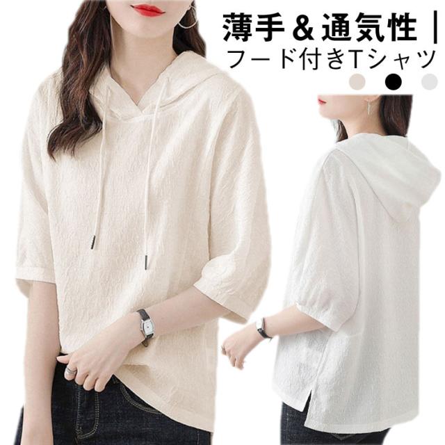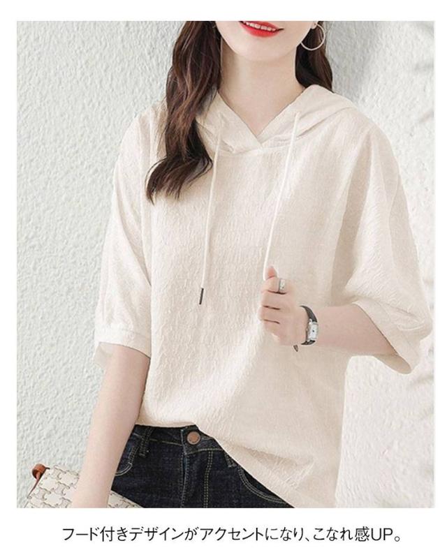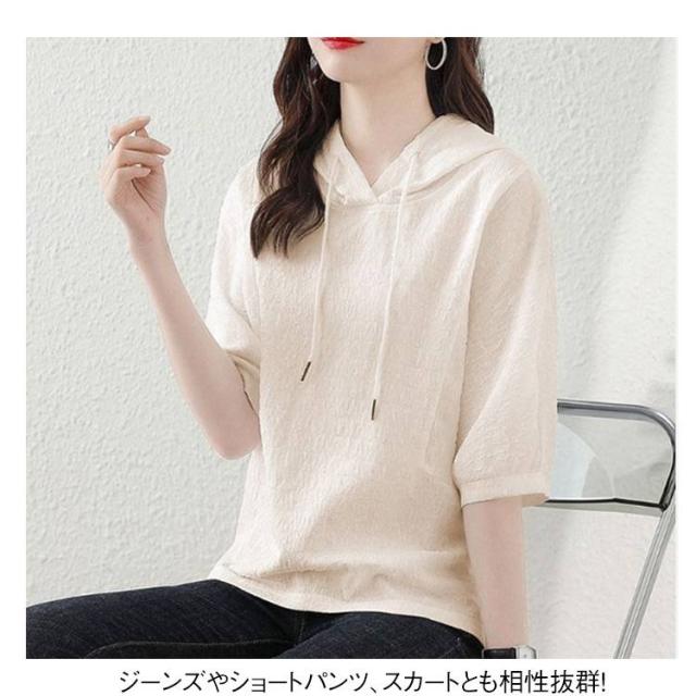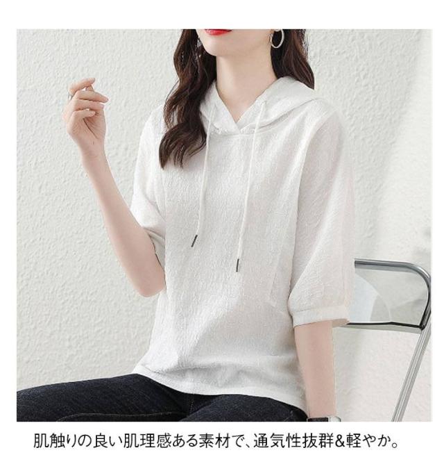 薄手 夏 レディース 着痩せ ゆったり 半袖パーカー トップス カジュアル 半袖パーカー 五分袖 パーカー 夏服 シンプル
