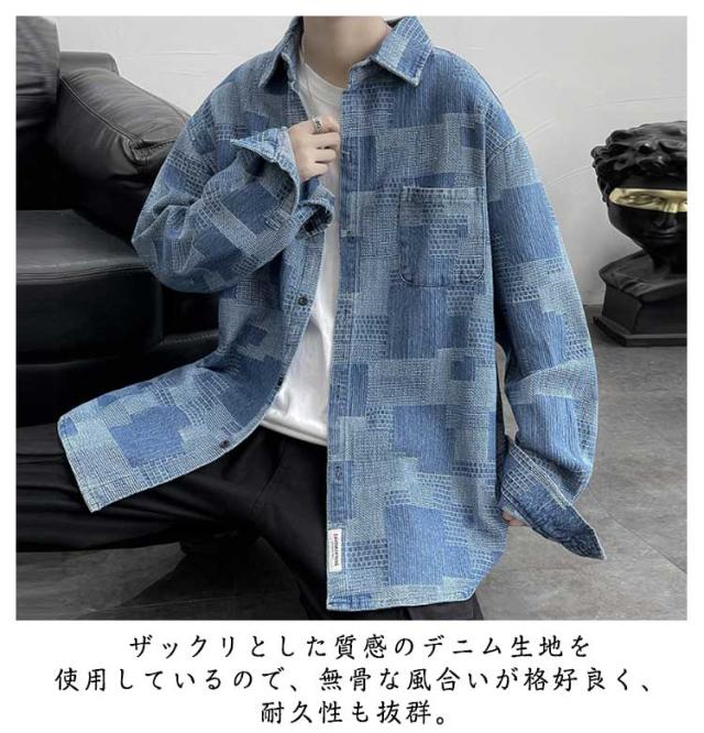 大きいサイズ パッチワーク ワークシャツ メンズ デニムシャツ 長袖シャツ シャツ デニムシャツ ヒューストン 無地 デニムシャツ 長袖 羽織り デニムジャケット 立体感 配色ステッチ ワーク ミリタリー ナチュラル ストリート