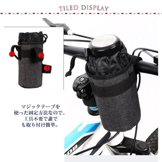 | シンプルなデザインの自転車やベビーカーに取り付けれるボトルホルダーです。 マジックテープを使った固定方法なので、工具不要で誰でも取り付け簡単。 内部にアルミ素材を採用。ボトルやペットボトルの保温保冷効果があります。 水筒、ボトル、ペットボトルに対応しています。口は巾着型で、小型のハンドルバーバッグにもなります。 ドリンクホルダーはボトル用としてだけではなくペットボトル用としてもご使用できます。 | |