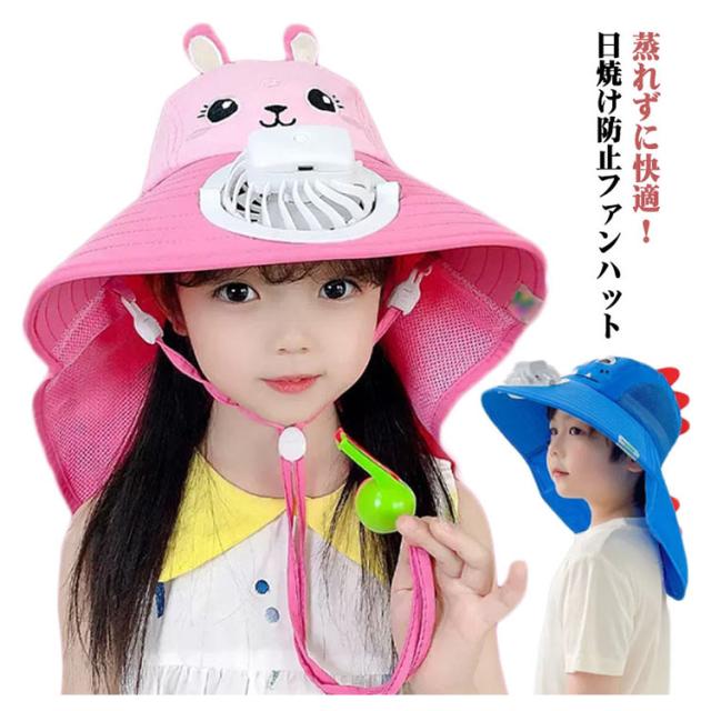 女の子 あご紐 UVカット ミニファン付き 日よけハット 外遊び 男の子 ネックカバー 通園 キッズ 通学 子供 扇風機 付き ファン付き 熱中症対策