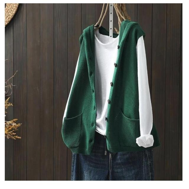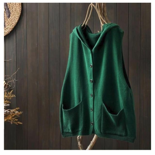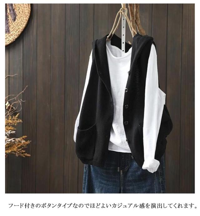 ベスト ニットベスト ノースリーブ ニット フード付き レディース おしゃれ 前開き 紺色 ポケット付き カーディガン ゆったり ニットパーカー 重ね着 レイヤード パーカー お洒落 可愛い 緑 ベージュ ニットベスト 黒 春 秋 送料無料