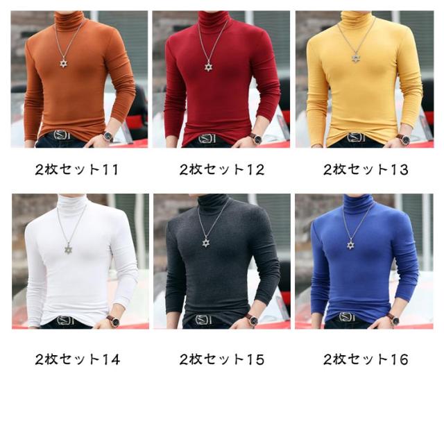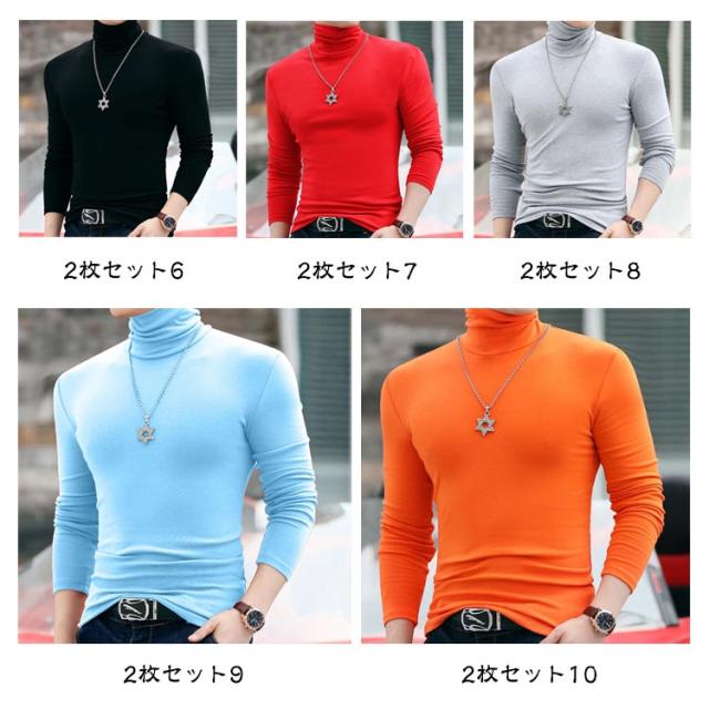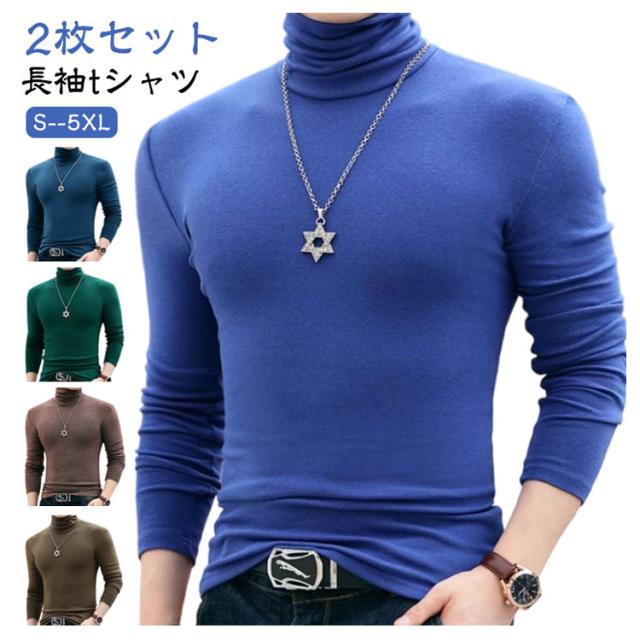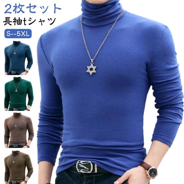 2枚セット ロンT 細身 ハイネックtシャツ タートルネック ハイネック タイト インナーシャツ ハイネック 長袖 2枚セット 長袖tシャツ スリム ストレッチ 春 秋 冬 トップス 防寒 男性 肌着 モーダル生地