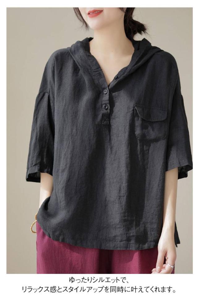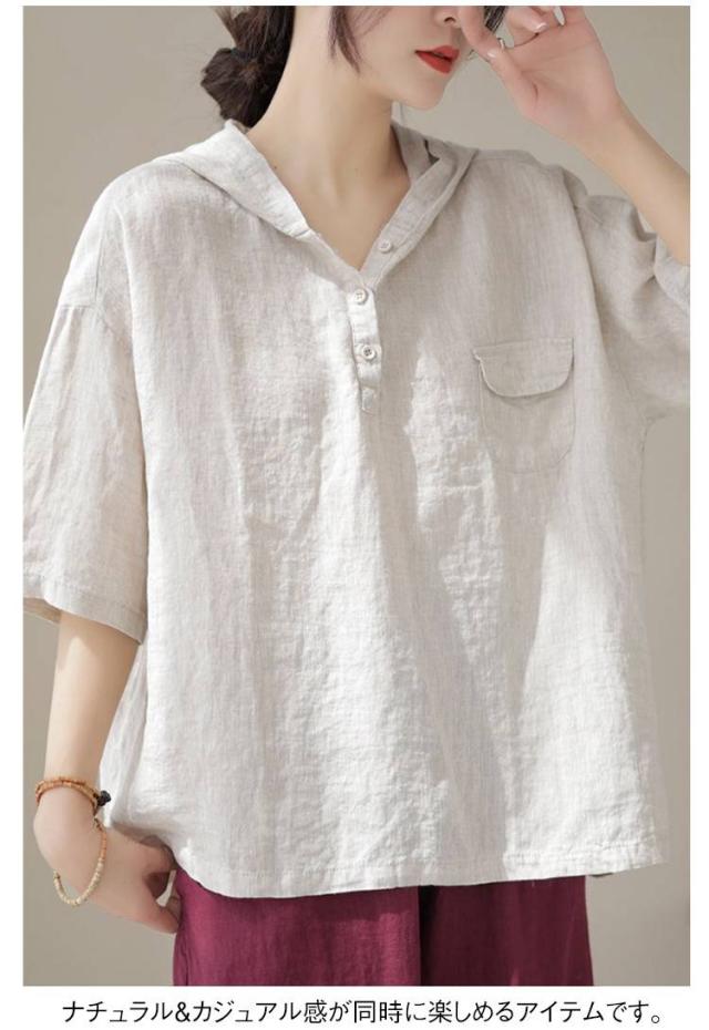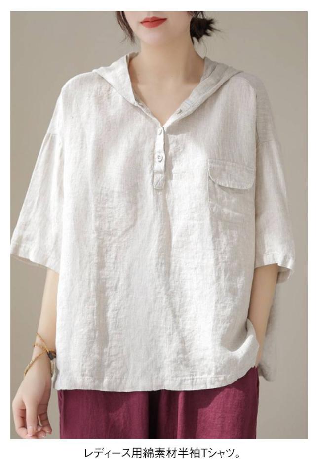 ゆったり フード付きtシャツ カジュアル トップス フード付きtシャツ コットン レディースTシャツ 春夏 大きいサイズ 着痩せ Tシャツ フード付きT 夏用Tシャツ ゆったり ナチュラル 30代 40代 5色展開