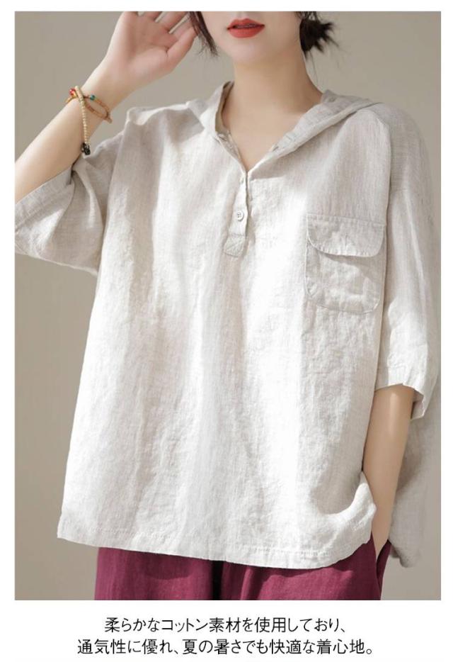 | 【ゆったりデザイン|体型をカバーしてスリムに見せる】 【文芸スタイル|ナチュラルで優しい印象に】 【フード付きデザイン|カジュアルで若々しい雰囲気】 【綿素材|通気性抜群で肌に優しい】 【5色展開|スタイルに合わせて選べる】 レディース用綿素材半袖Tシャツ。 ナチュラル&カジュアル感が同時に楽しめるアイテムです。 柔らかなコットン素材を使用しており、通気性に優れ、夏の暑さでも快適な着心地。 ゆったりシルエットで、リラックス感とスタイルアップを同時に叶えてくれます。 M〜4XLの豊富なサイズ展開、さらに5色の落ち着いたカラーバリエーションで、日常着としても旅行やピクニックにもぴったりの一着です。 | |