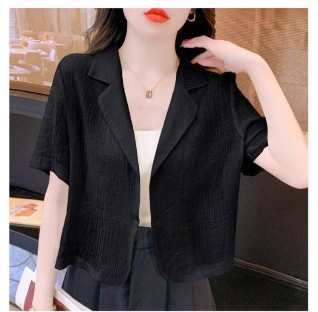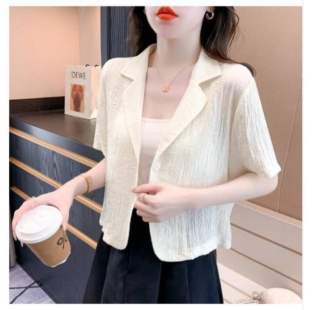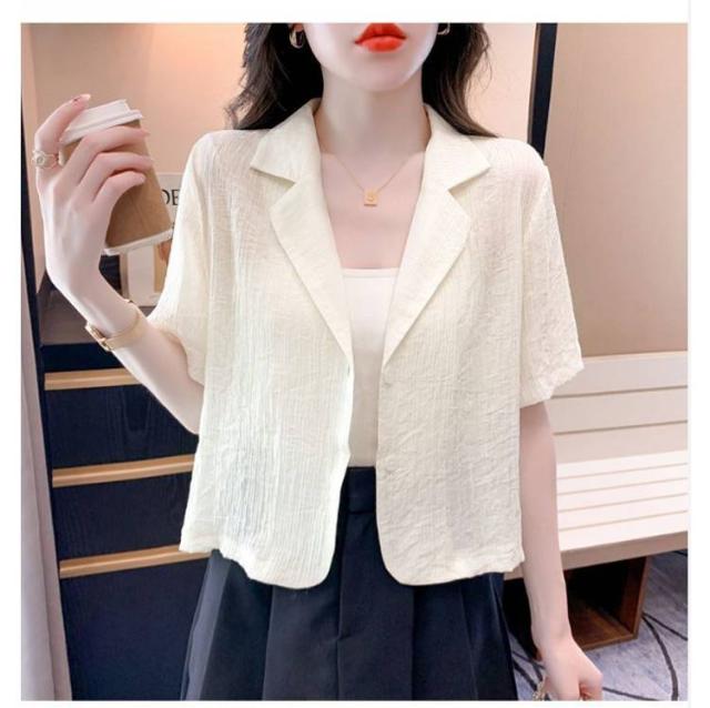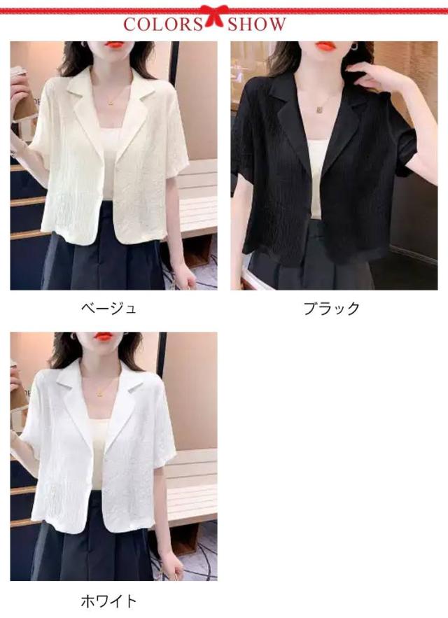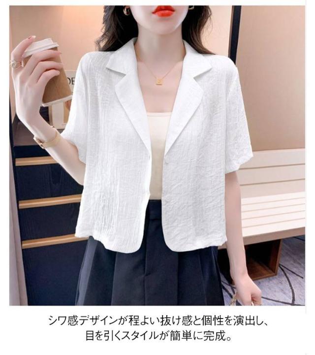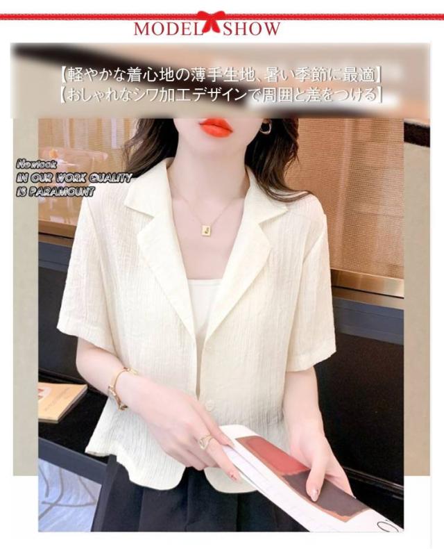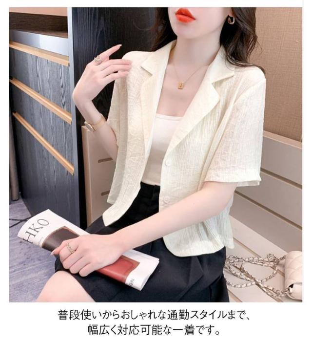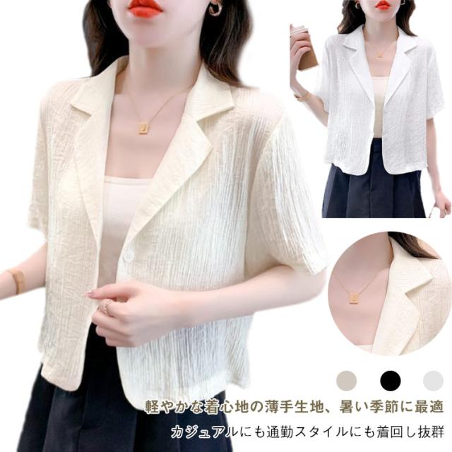 夏用 ショート丈 薄手 夏ジャケット レディース 夏ジャケット 半袖ジャケット シワ加工 ゆったり サマージャケット かわいい 羽織り