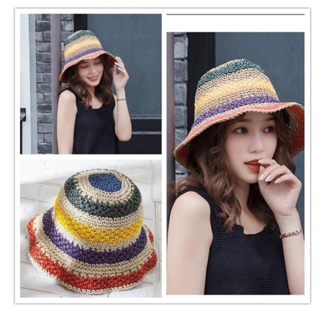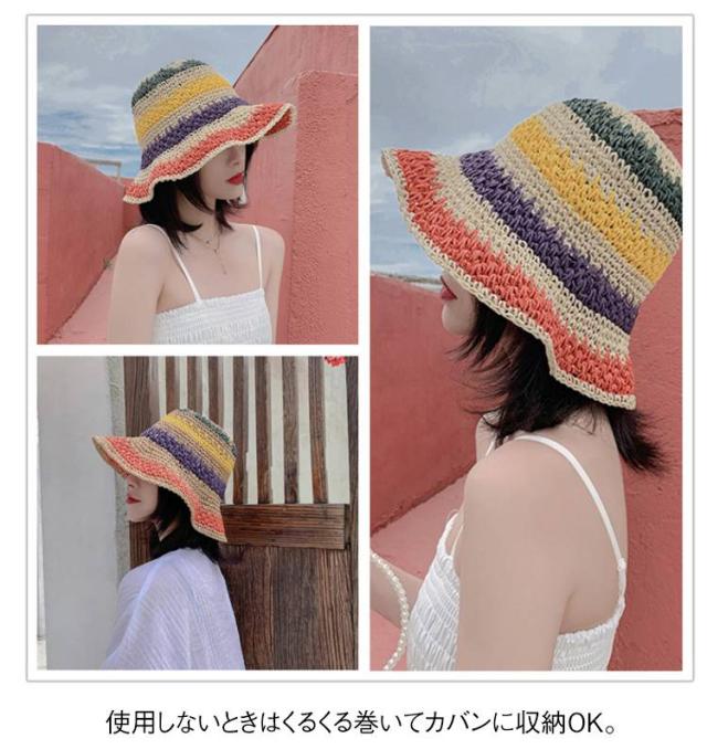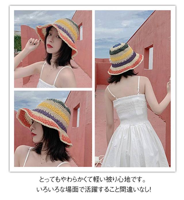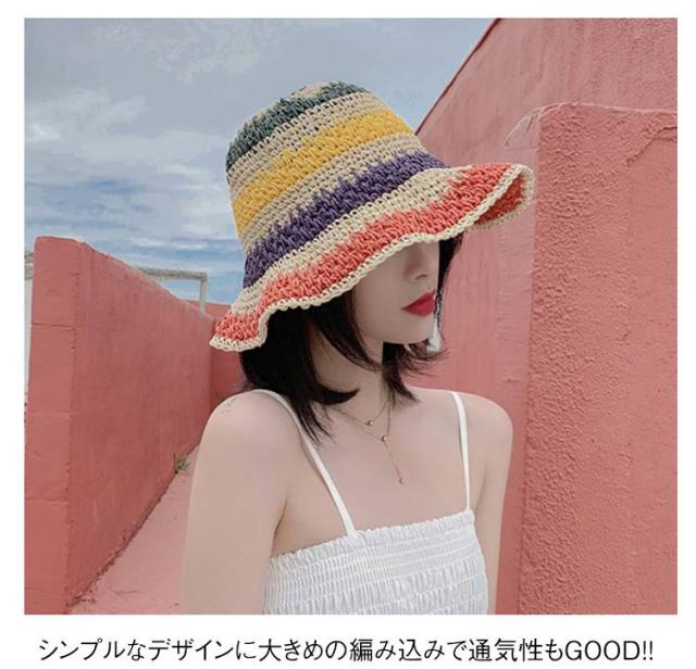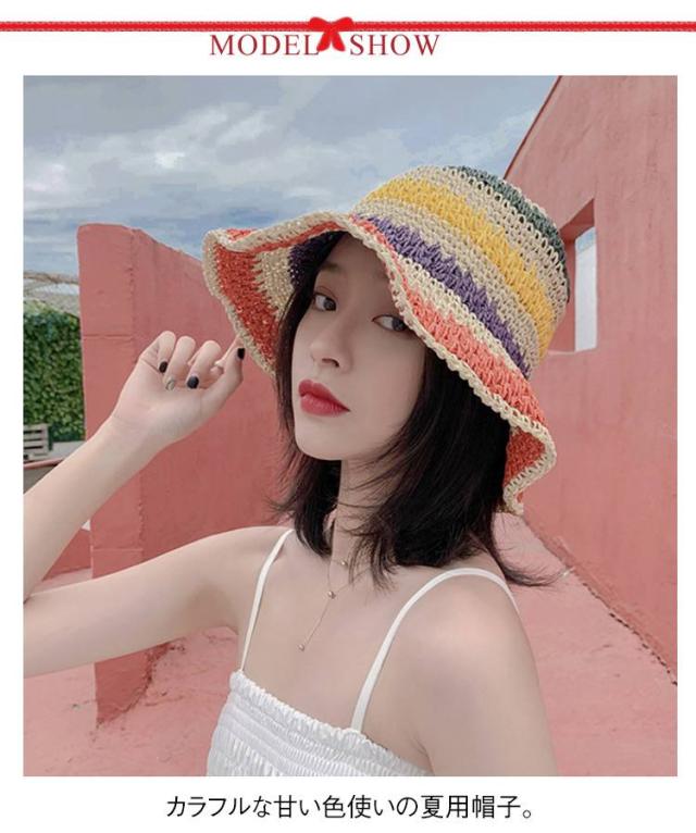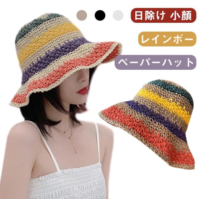 日除け帽子 小顔 麦わら帽子 日除け帽子 夏用 つば広 ハット ペーパーハット レインボー レディース 麦わら 帽子 虹柄 日よけ 紫外線対策 日焼け防止 旅行 リゾート