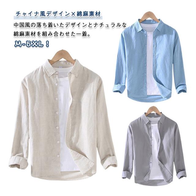 春夏 綿麻シャツ メンズ リネンシャツ おしゃれ チャイナ チャイナ 開襟シャツ 長袖シャツ 無地 シャツ 通勤 通学 羽織り アウター 薄手 メンズファッション カジュアル 男子 夏用トップス