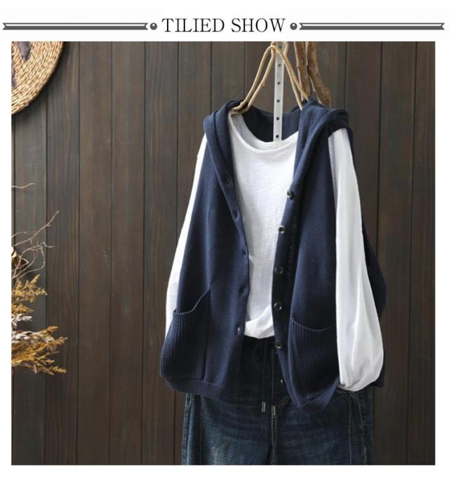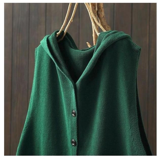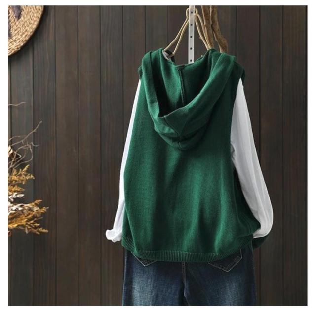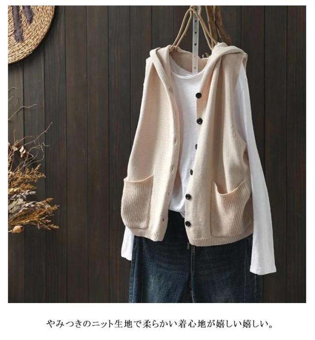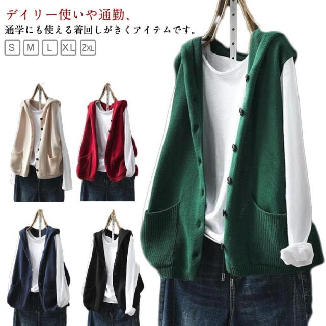 緑 ノースリーブ ニットベスト カーディガン ニット レディース パーカー 前開き ニットベスト ベスト ニットパーカー フード付き おしゃれ 重ね着 レイヤード トップス お洒落 可愛い ポケット付き ベージュ 黒 紺色 春 秋 送料無料