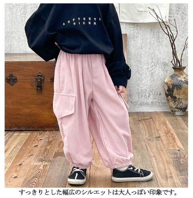 ボトム パンツ ワイドパンツ おしゃれ ズボン キッズ 長ズボン かわいい ボトムス カーゴパンツ キッズ 冬 バギーパンツ 女の子 シンプル 90cm 可愛い ポケット ナチュラル 無地 春 春秋 秋冬 120cm 80cm 子供服 100cm 110cm 子ども 130cm 140cm 150cm
