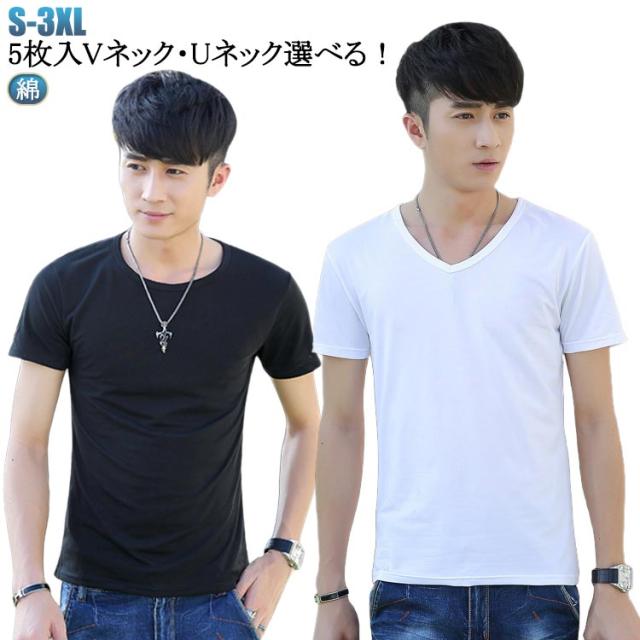 大きいサイズ シンプル メンズ Vネック 半袖 無地 肌着 5枚セット 紳士 下着 綿 クルーネック 男性用 インナー インナーシャツ アンダーシャツ 白 黒 丸首 定番 無地 オフィス 仕事 tシャツ インナーウェア カットソー