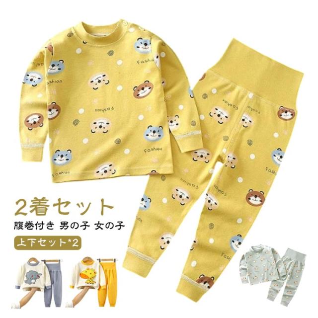 キッズ 綿 長袖 ベビー パジャマ 上下セット 春 腹巻付き 子供パジャマ 女の子 こども 長ズボン ベビー服 ルームウェア 部屋着 2着セット 秋 子供服 子ども 男の子 冬 おしゃれ かわいい 総柄 寝間着 入園グッズ 入園セット 73 80 90 100 110 120cm