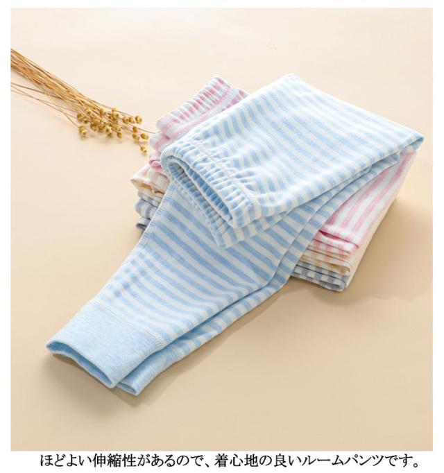 | 【2枚セット】【綿】【90〜160cm】 柔らかい風合いが快適で軽い着心地のルームパンツ。 綿でお肌に優しく、肌触りの良い柔らかな風合いが特徴です。 肌に直接触れるものだから、安心の天然素材でつくりました。 ほどよい伸縮性があるので、着心地の良いルームパンツです。 程よい厚みで一年中着用いただけます。春や秋にはこの一枚で十分です。 夏の冷房対策にもなれますし、冬はインナーとして着用いただけます。 | |