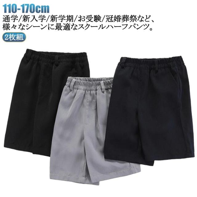 スクール 紺 黒 ハーフパンツ 総ゴム 半ズボン 学生服 ウエストゴム 小学校 2枚組 小学生 キッズ グレー ノーアイロン 通学服 5分丈 制服 スクールパンツ 洗える 小学生 キッズ ジュニア 卒業式 入学式 ショートパンツ 冠婚葬祭