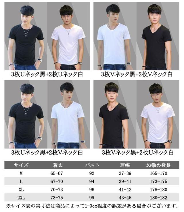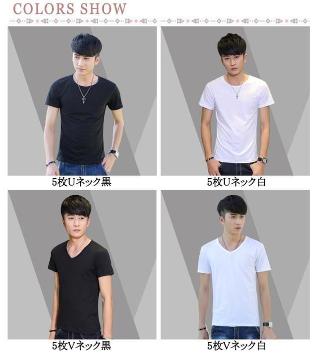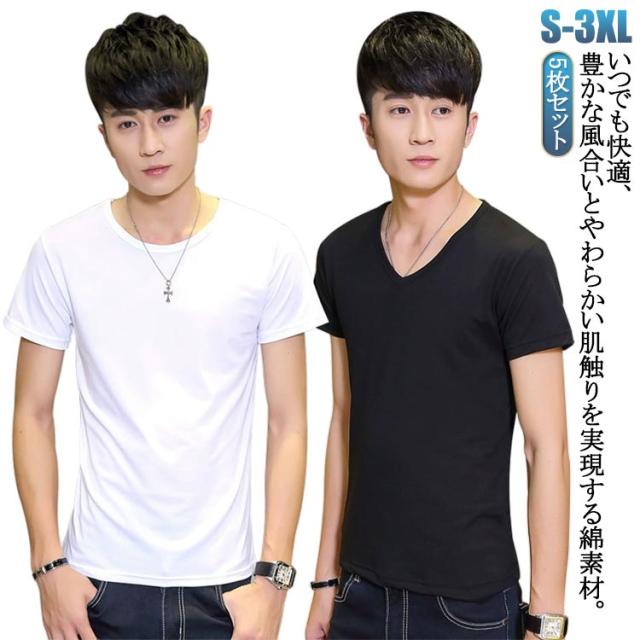 V首 丸首 大きいサイズ 5枚セット Uネック 5枚セット 下着 半袖 クルーネック 肌着 Tシャツ メンズ 男性用 アンダーシャツ Vネック 紳士 コットン 白 黒 無地 定番 シンプル オフィス