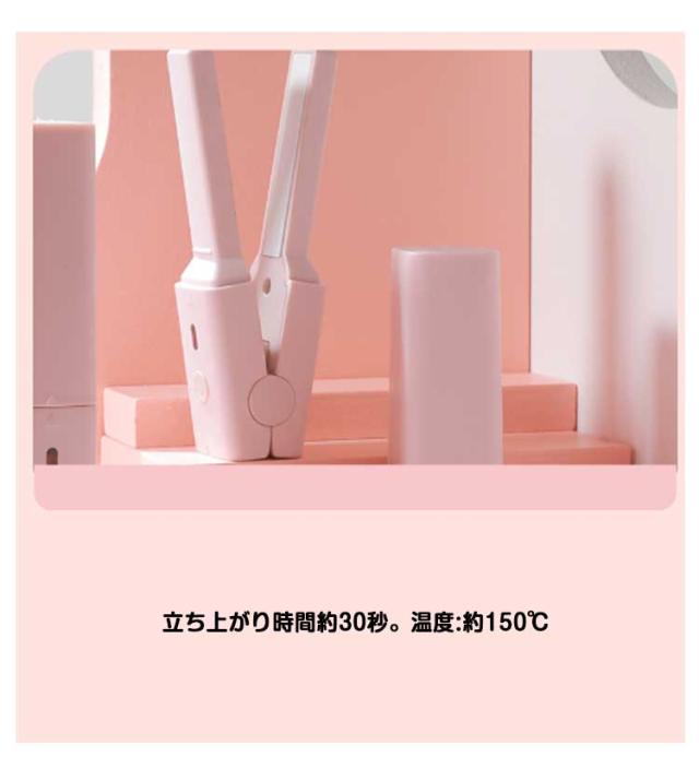 | USB充電式ヘアアイロン 収納ケース付き ミニサイズ 立ち上がり時間約30秒。温度:約150℃ があればどこでも利用でき、お出かけ先でのヘアアレンジや、仕事・学校帰りの予定に合わせて髪を整える際にも活躍します。 コンパクトなサイズ感も嬉しいポイント。旅行の際もかさばりません。 また、収納ケース付きなので安心して持ち運べます。 インテリアにも馴染む、洗練されたデザイン。ギフトにもおすすめです。 | |