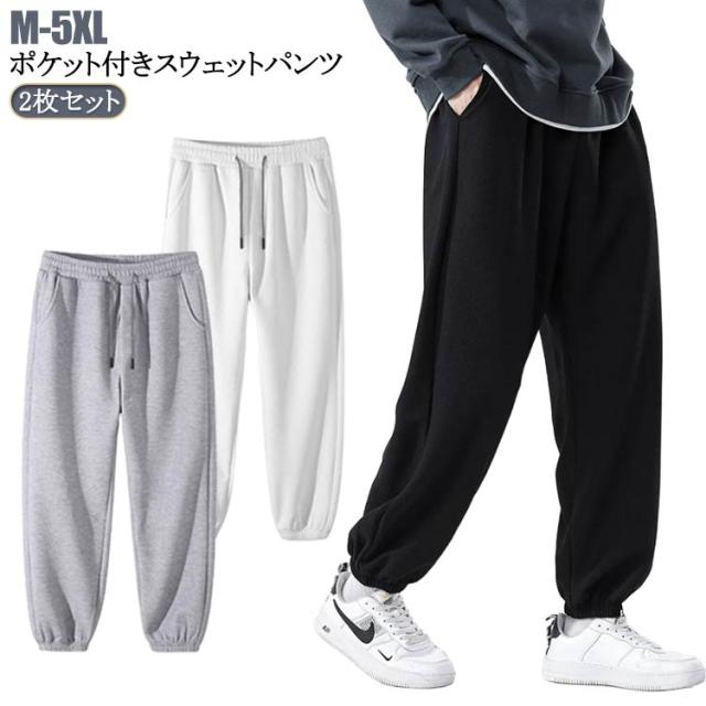スウェットパンツ ジャージ ワッフル メンズ 下 パンツ 黒 アウトドア スウェット グレー スウェットパンツ 白 無地 部屋着 ルームウェア ペア パジャマ 春 夏 秋 冬 服 ポケット付きスウェットパンツ2枚セット! カジュアル スポーツ ゆったり ズボン ロングパンツ