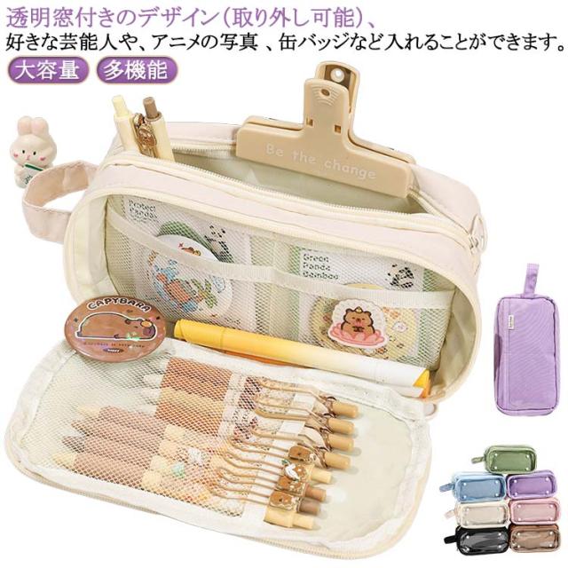 | 透明窓付きのデザイン(取り外し可能)、好きな芸能人や、アニメの写真 、缶バッジなど入れることができます。 簡単に世界中一つだけ自分のペンケースは完成します。 毎日楽しく使えます。 レディース、メンズ、男女兼用、子供、小学生、中学生、高校生、大学生、大人にも適用します。 持ち手が付いているので持ち運びにも便利で、バッグなどからの取り出しにも便利です。 容量が大きく、散在するさまざまな小物を簡単に分類できます。小学生から高校生まで幅広く愛されるデザインです、 自分で使うのがもちろん入学、進学、誕生日のプレゼントや入学プレゼントなどとしても最適で、きっと喜ばれます。 | |
