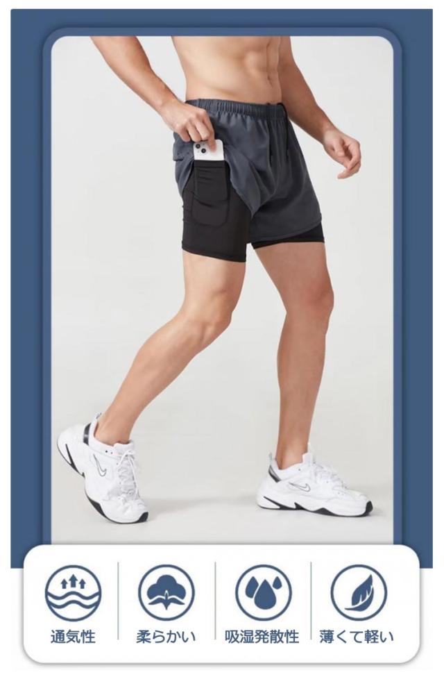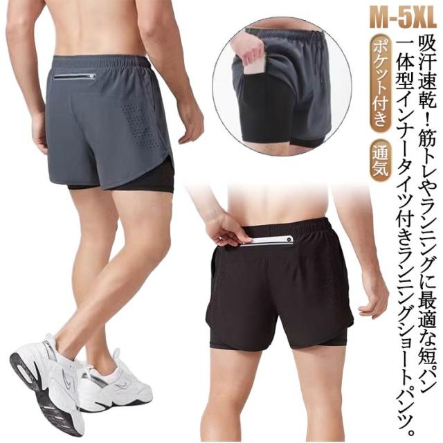 | 吸汗速乾!筋トレやランニングに最適な短パン 一体型インナータイツ付きランニングショートパンツ。 | |