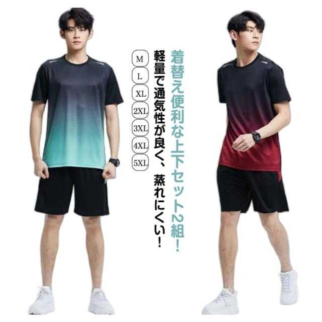 半袖Tシャツ ハーフパンツ メンズ 短パン 春 レディース 秋 上下セット 薄手 2点セット スポーツウェア 着替え便利な2セット組!ランニングウェア tシャツ 着替え便利な2セット組!ランニングウェア トレーニングウェア カジュアル 吸汗速乾 半袖 無地 通気性 軽量
