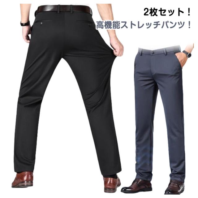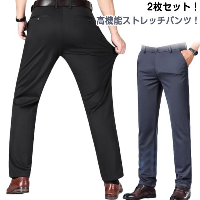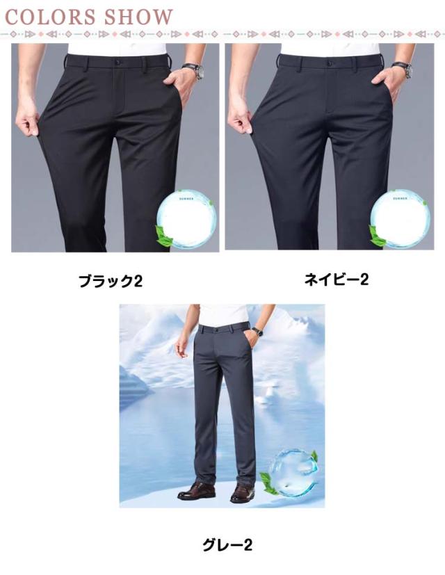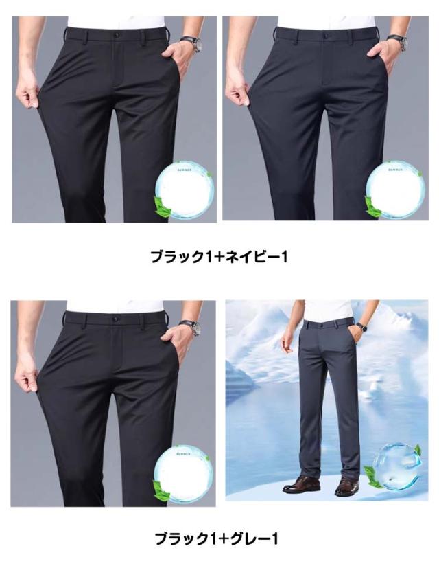 涼感 スラックス グレー スリム 接触冷感 春夏秋 ひんやり ウォッシャブル 防シワ 2枚セット 吸汗速乾 ストレッチパンツ ローライズ メンズ ストレッチ 黒 パンツ 冷感 超伸縮 ネイビー ブラック 紺 超伸縮 カジュアル ビジネス ゴルフ スポーツ