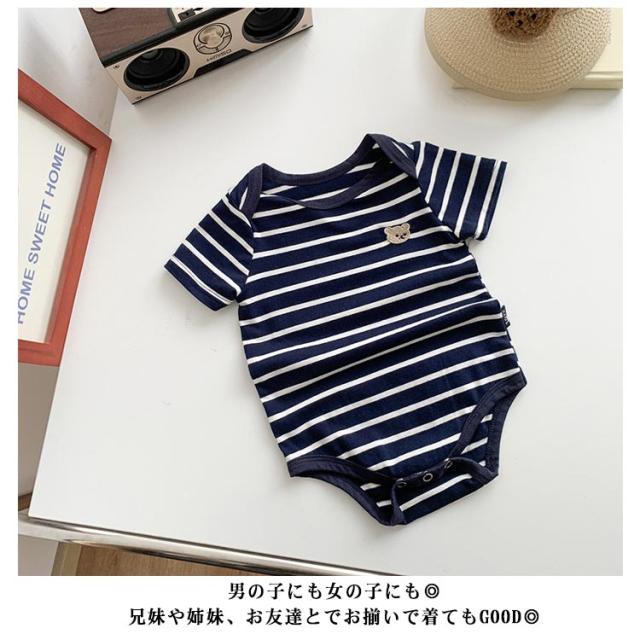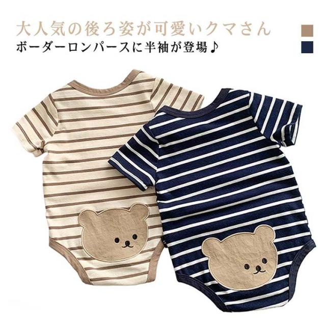 ロンパース 普段着 ボーダー かわいい 赤ちゃん くまさん ボーダーロンパース ボディオール 新生児 男の子 ベビー服 女の子 ベビー おしゃれ 子供服 半袖ロンパース 夏 カバーオール 股ボタン 半袖 肌着 七五三 退院着 出産祝い カジュアル 66 73 80