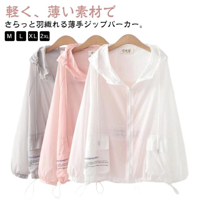 夏 UV パーカー 長袖パーカー 春夏ジャケット UV パーカー 涼しい UVカット フード付き ジャケット レディース ラッシュパーカー ジップアップパーカー マウンテンパーカー 春 アウター 羽織り 大きいサイズ ライトアウター 体型カバー ゆったり 学生
