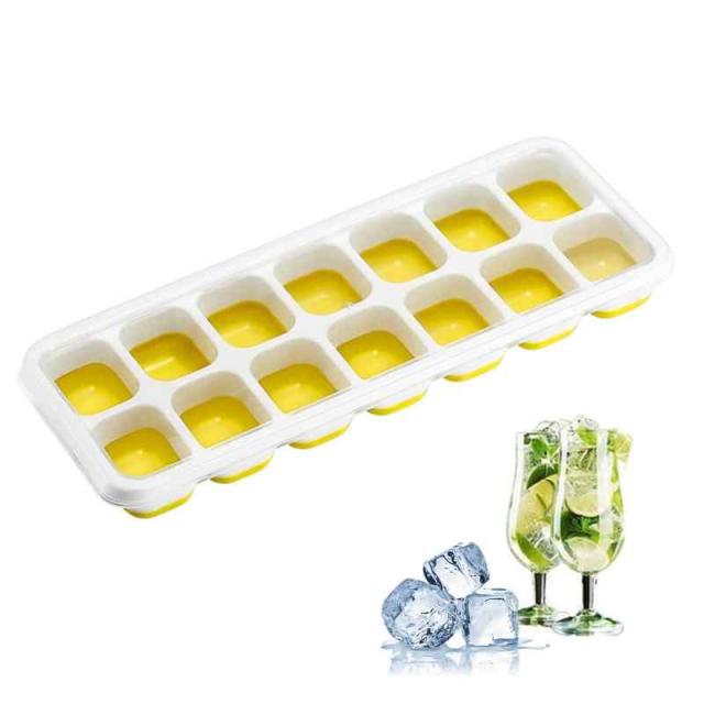 YFFSFDC 製氷皿 14個取りシリコン製アイストレー製氷器 小分け 四角氷 ミニ 製氷皿 蓋付き取り出しやすい 漏れ防止 可愛い 細長い 小粒お菓子お茶やお酒用氷が作れる (イエロー)