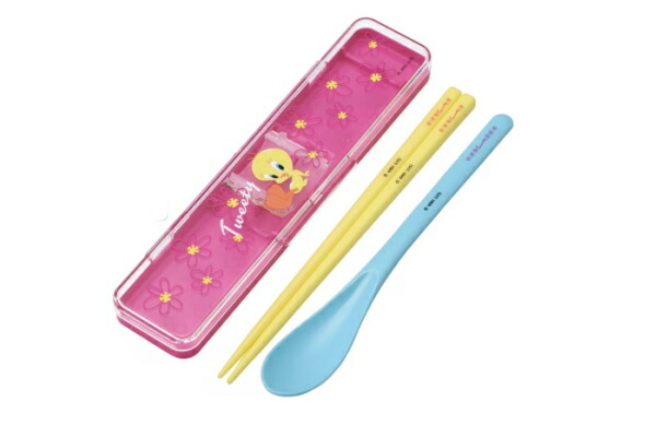 【日本製】【ルーニー・テューンズ】抗菌音のならないコンビセット【18cm】【トゥイーティー】【アメキャラ】【アニメ】【箸】【スプーン】【箸入れ】【箸ケース】【コンビ】【遠足】